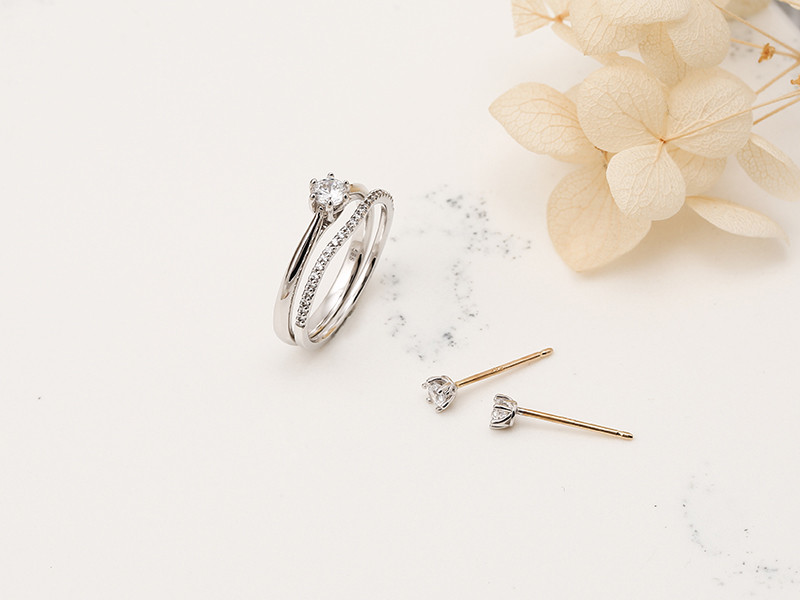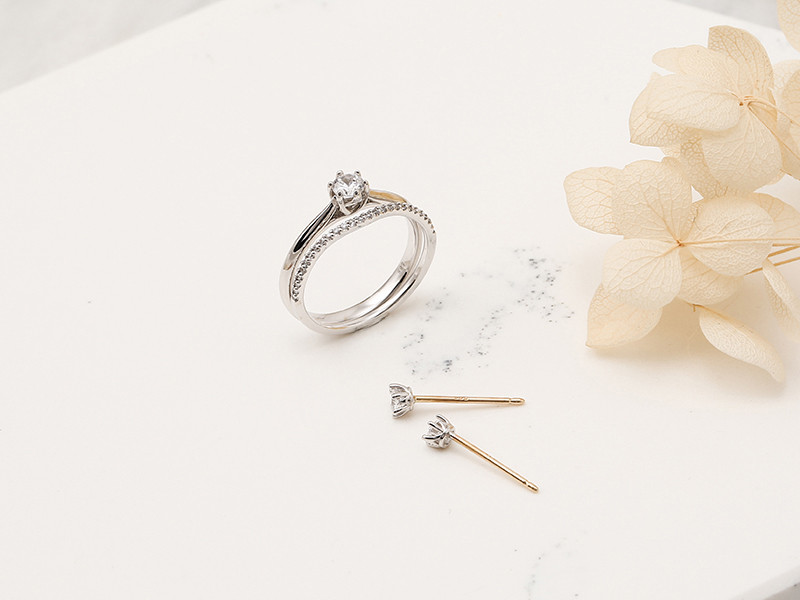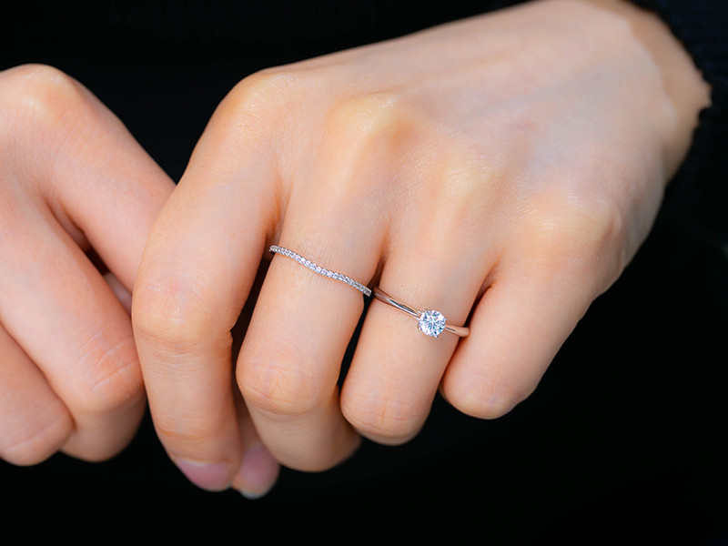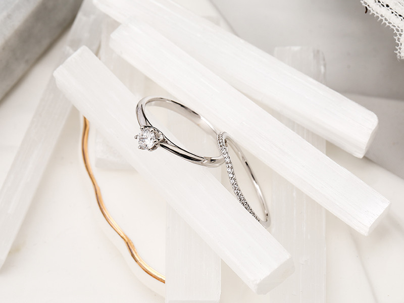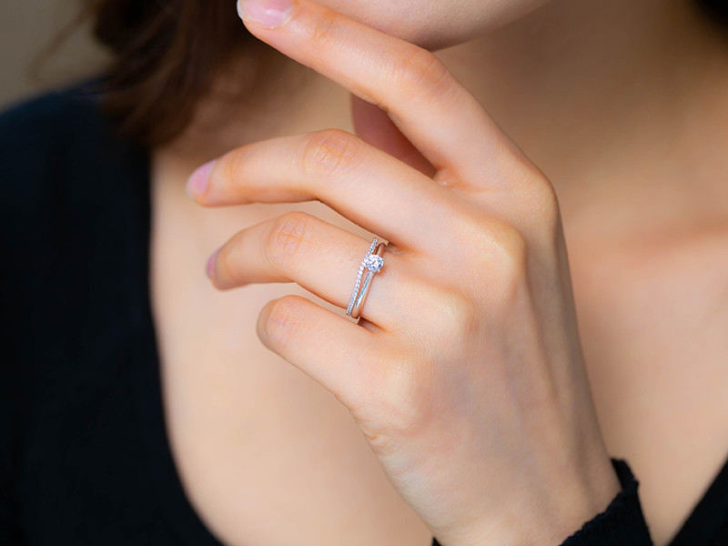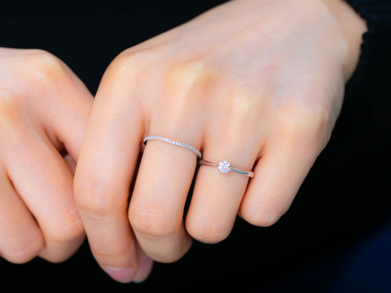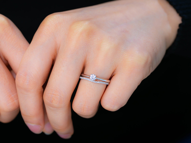 부드러운 곡선 포인트를 넣은 레이어드 링이 아름답게 조화를 이룬